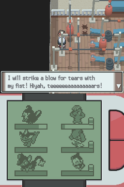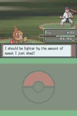 "Haha... this isn't one of my prouder moments, but a couple Galactic goons jumped me and took my Pokedex."Roy: ...You got your ass kicked by some Galactics?"Look, man, like I just said, not one of my prouder moments. They got me by surprise but... that's not the point! Look, Fi, they took my pokedex, and honestly they could've broken both of my legs and it still wouldn't be as bad as what the Professor would do to me. I HAVE to get that back, Fi, or I am literally a dead man. A dead man who the Professor is going to call 'Shirley' for the rest of eternity. You gotta help me out. Please?"I-I... uh... y-yeah! Totally. I-I'm not gonna let them get away with that!"Thanks, Fi. I'll be waiting in front of the warehouses... er... After I put my nose back into place."