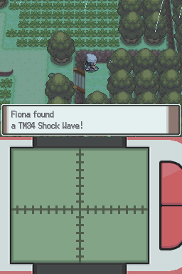 "Still. You earned this.">Fiona received the Cobble Badge!"With that badge, you can use the hidden machine Fly outside of battle. And you can have this too.">Fiona received the TM60 (Drain Punch)!"I got a feeling you and that machop of yours could put it to good use."