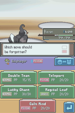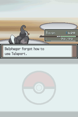 Okay. Time for some restructuring and grinding. First and foremost, this thing? Gone. Sick of it taking up space where a useful pokemon could go.Belphegor: FINALLY.
