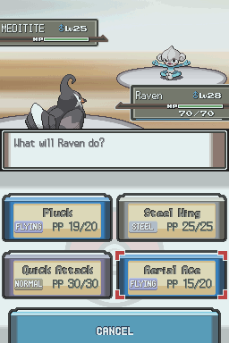 Aerial Ace's PP is low... definitely should have gone to the pokecenter but I was sorta... excited to be out of the damn puzzles...