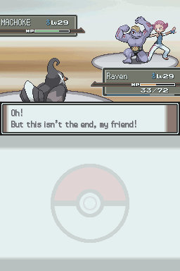 Uh... thank you, by the way. You were sorta right. I was just kinda... going into this without thinking clearly. But I'm never gonna get anywhere like that so... thank you. Again, I mean. Heh."No problem. Come back for a rematch some day! I'll be ready for you."Y-yeah!Raven: A-Are you two gonna make out now?RAVEN.