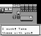 >Hey are you from Pallet town?No.>Do you know professor Oak?No.>Will you take this package to him for me?No.>Thanks.Fuck you.I AM NOT YOUR ERRAND BOY