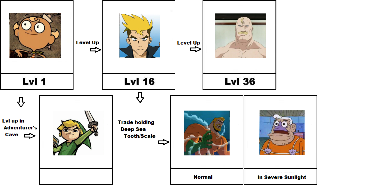 Oh yeah, and I guess lvl 16 is where Klutz evolves into the Monarch.
