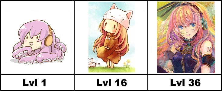 Starter - Hanako from Katawa ShoujoLevel 16 - Violet from the IncrediblesLevel 36 - Witch from Witch's Garden (Pic Related.)