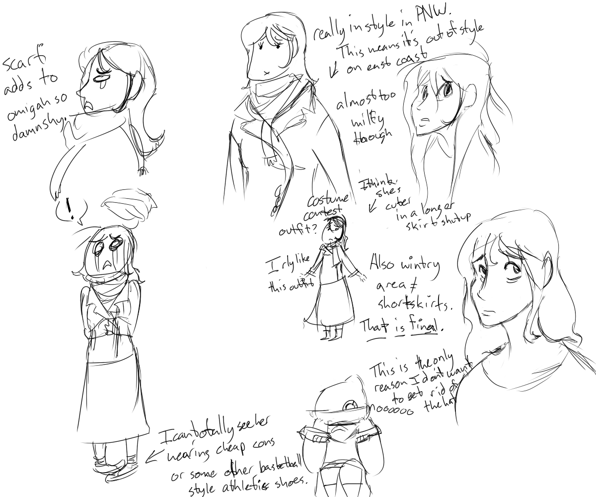 To pass the time, I've drawn a great deal of things involving Fiona's costume because obligatory costume change. Feel free to add your own notes since I've already shared some with Nurse.