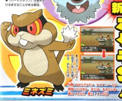 >>10345It looks like Bidoof in chipmunk form. I'm guessing it'll be the Ratata of the game?