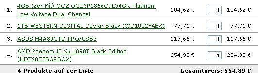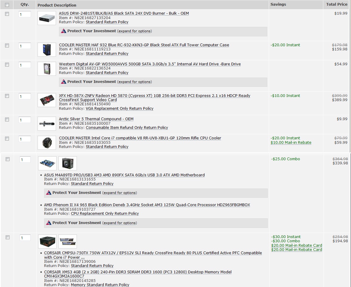 Aaaaaugh.... So my husband decided to pick all the parts without really letting me do my own research before confirming the order. This.... it's not so bad, right?- Western Digital Caviar Black WD1002FAEX 1TB 7200 RPM SATA 6.0Gb/s 3.5" Internal Hard Drive- Antec Nine Hundred + EA650 Black Steel ATX Mid Tower Computer Case 650W Power Supply- EVGA 01G-P3-1372-TR GeForce GTX 460 Superclocked (Fermi) 1GB 256-bit GDDR5 PCI Express 2.0 x16 HDCP Ready SLI Support Video- G.SKILL Flare 4GB (2 x 2GB) 240-Pin DDR3 SDRAM DDR3 2000 (PC3 16000) Desktop Memory Model F3-16000CL9D-4GBFLS- ASUS Crosshair IV Formula AM3 AMD 890FX SATA 6Gb/s USB 3.0 ATX AMD Motherboard- AMD Phenom II X6 1090T Black Edition Thuban 3.2GHz Socket AM3 125W Six-Core Desktop Processor HDT90ZFBGRBOX