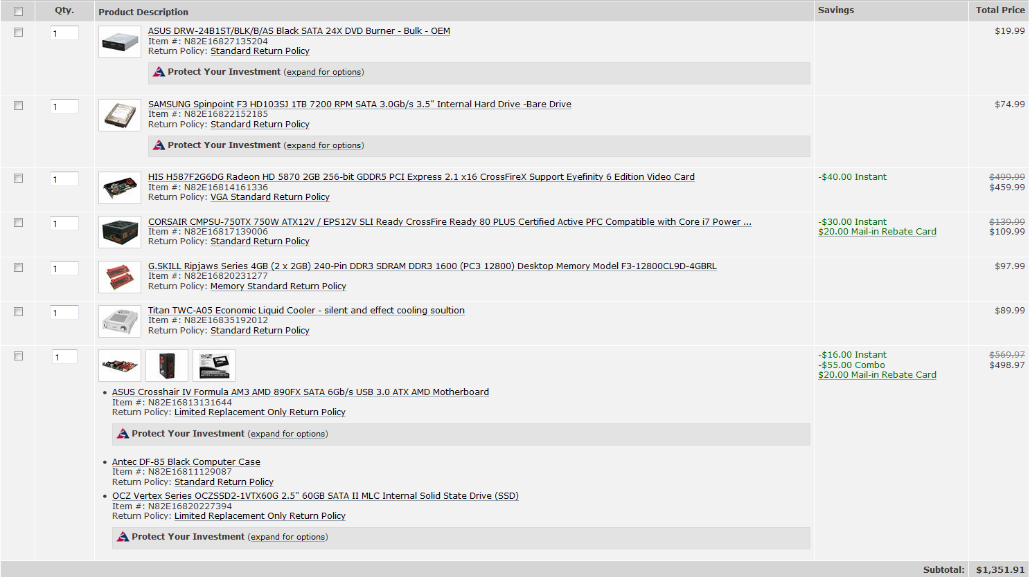 >>1909For the HDD, I have two that I found to be amazing deals for what you are getting. They have pretty big differences, so I will let you choose for yourself.http://www.newegg.com/Product/Product.aspx?Item=N82E16822148590http://www.newegg.com/Product/Product.aspx?Item=N82E16822136533Price, or power?Now time to actually go through your questions and answer them to the best of my power.